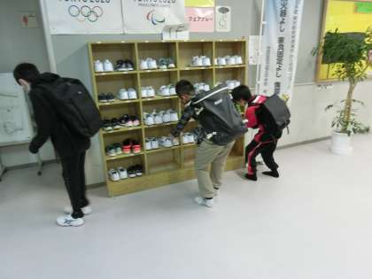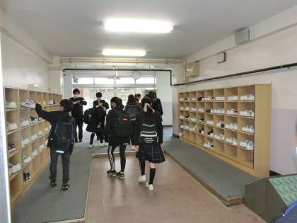 1年生の登校の様子です。元気に登校してきました。1年E組だけ北校舎の昇降口を使います。
