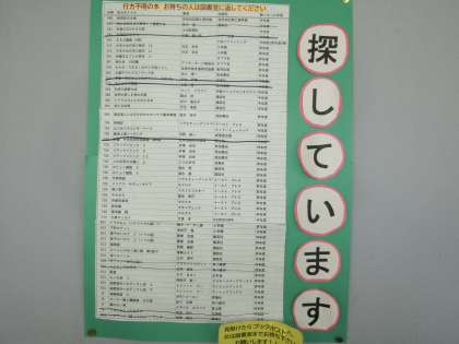 図書室の本が何冊か行方不明になっています。もしお持ちの方がいらっしゃいましたら図書室までご返却ください。なお、行方不明の本の一覧は図書室前の廊下に掲示してあります。