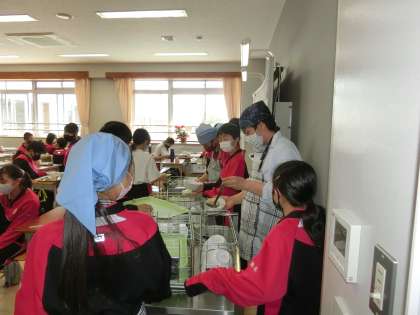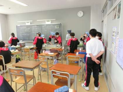 1年F組の様子です。F組だけ北校舎でほかの1年生のクラスと離れていますが、こちらも当番を中心に協力して準備が出来ていました。