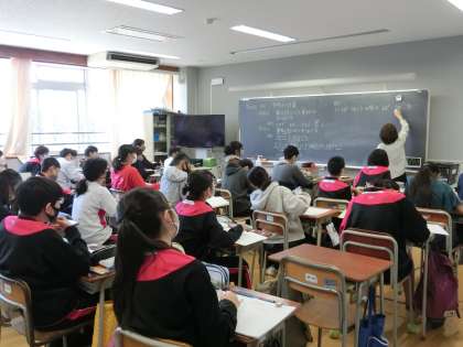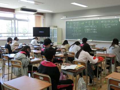 2年生の数学の授業です。単項式と多項式について学びました。少人数での授業ですがどちら教室でも集中して取り組んでいました。
