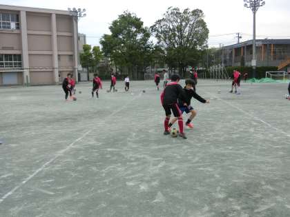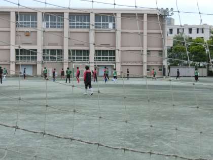 さていよいよ明日が仮入部最終日ななります。どの部も練習に熱が入ります。サッカー部の練習風景です。フィールドでは1対1、キーパーはセービングの練習をしていました。最後はゲーム形式の練習を行いました。