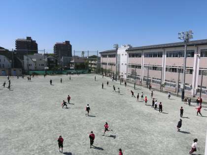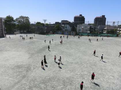 今日はやや風が強いものの晴天のなか、楽しそうに校庭で遊ぶ生徒の姿が見られました。
