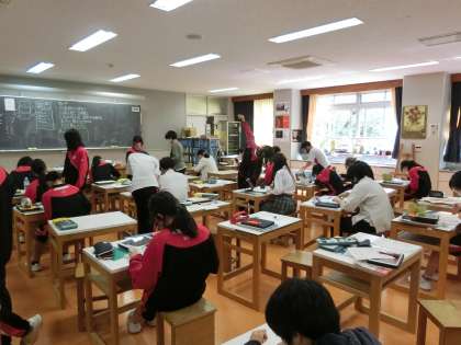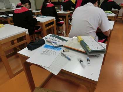 2年生の美術の授業では、絵文字に取り組みました。漢字一文字を選びその文字をデザインいました。