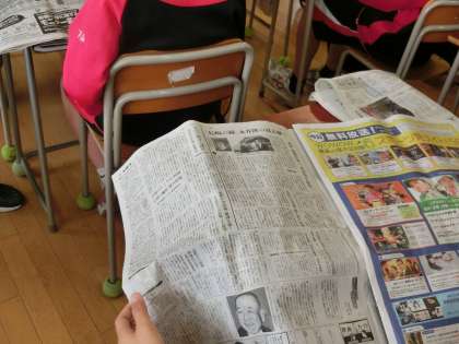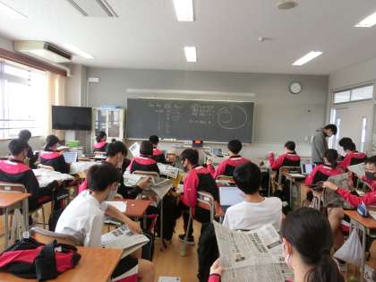 今日の1時間目の3年生はNIE(Newspaper in Education)の取り組みとして、新聞に掲載されている記事の中からテーマを選びそれについて1年関連した間新聞記事を調べていく取り組みを行います。今日は各自が1年間取り組むテーマを決めました。
