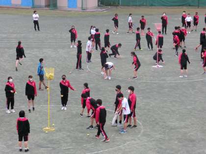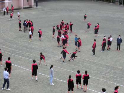 朝練習です。今日はリレーの練習と玉入れを行いました。