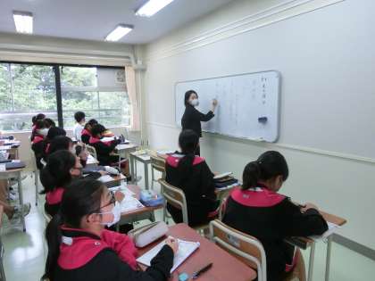 本年度から国語の授業でも少人数授業を始めました。東校舎3階に少人数授業に使う教室を新設しました。今日は文の成分で接続語について学びました。
