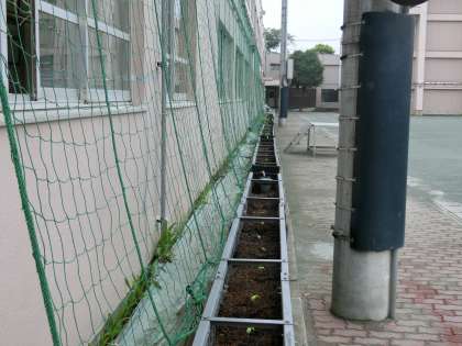 先月末に種をまいたきゅうりが発芽しました。これからぐんぐん伸びて来月末にはグリーンカーテンが出来上がると思います。