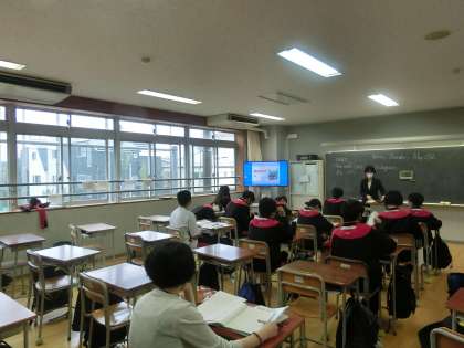 昨日から英語の教育実習生による授業が始まりました。今日の2年生の少人数授業は接続詞whenについてでした。