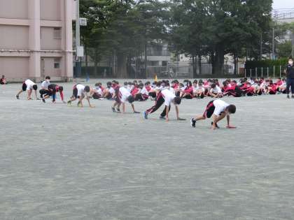 3,4時間目は1年生の学年練習でした。3時間目は全員リレー、4時間目は学年種目の「ぐるぐるぴょんぴょん」を行いました。クラスで話し合った作戦の成果はどうでしたでしょうか?全員リレーの様子です。