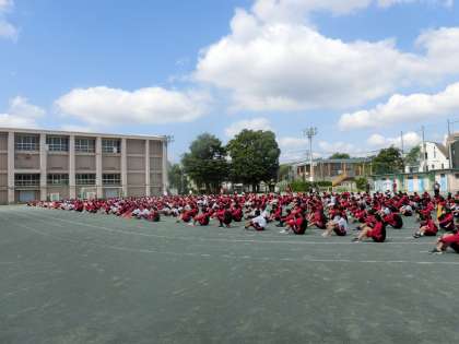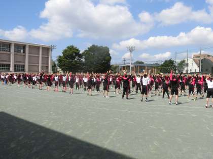 今日の1時間目は全体練習を行いました。全体練習としてはこれが最後です。明日は予行をおこないます。集合した後静かに支持を聴きました。そのあとはラジオ体操です。