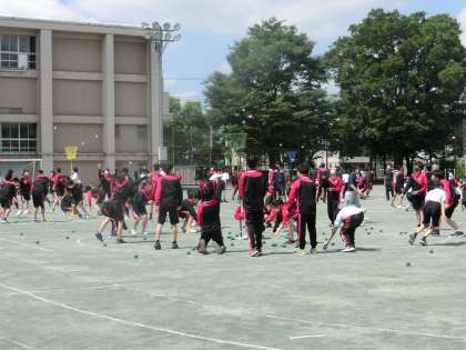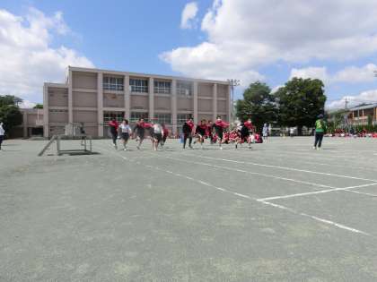 全体練習では玉入れと3年生の学級対抗リレーを行いました。