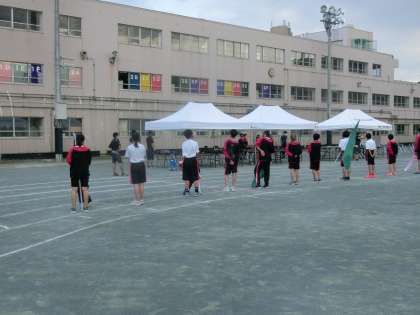 明日は運動会の予行ですね。会場や用具の準備も整い、最後は体育委員が明日の動きを確認いたしました。
