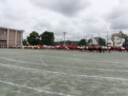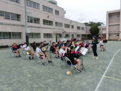 本日は運動会の予行を行いました。吹奏楽部の演奏に合わせて入場です。なお、本日の予行の様子は「運動会予行」という題名でご紹介いたします。