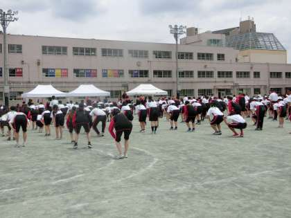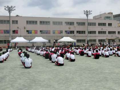 閉会式です。整理体操を行った後全員でこの後の予定を静かに聞いてきました。