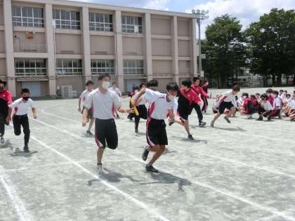 3年生の学年練習も今日が最後です。前半はダンスを通しで練習しました。後半は全員リレーを行いました。さすが3年生、リレーは迫力を感じました。