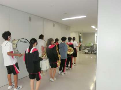 木曜日の昼休みの風景です。吹奏楽部が本番のパフォーマンスの練習をしていました。美しい音色が東校舎の3階まで響いてきました。本番が楽しみですね。