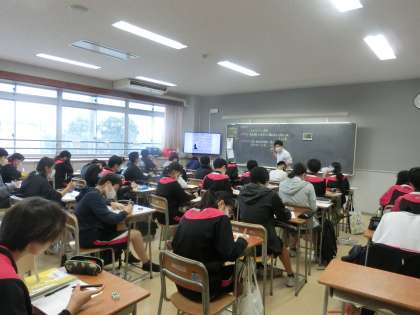 3年生の社会の授業です。大正デモクラシーについて学びました。第一次世界大戦が終わりベルサイユ体制のもと国際連盟がつくられまた、軍縮の動きが世界的に広がる中、日本国内では普通選挙を求める動きが活発になりました。この時代の特色だけでなく、なぜこうした時代になったのか、そしてその後どのように変化していったのかを考えていく授業でした。