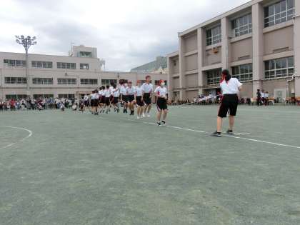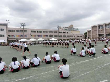 3年生の大繩です。これまではクラス全員が一本の縄で跳んでいましたが、昨年から密を避けるためクラスを2つに分けて跳びました。2回の合計で競いました。予行とはかなり違った結果に驚きました。