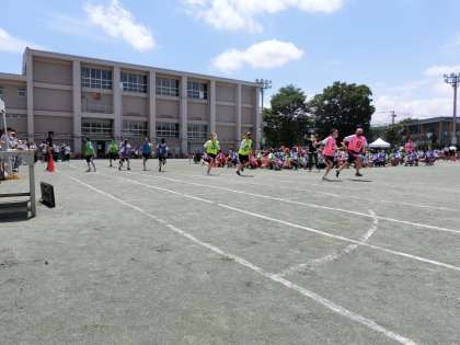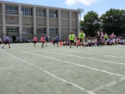 2年生全員リレーです。こちらも学年練習のあと何度も何度も話し合いました。勝ち負けはついてしまうのですが、クラス全員で一生けん命走りきった姿はとても素晴らしかったです。