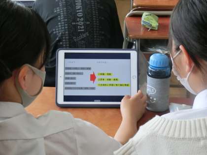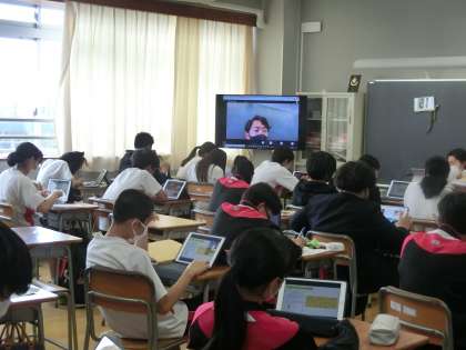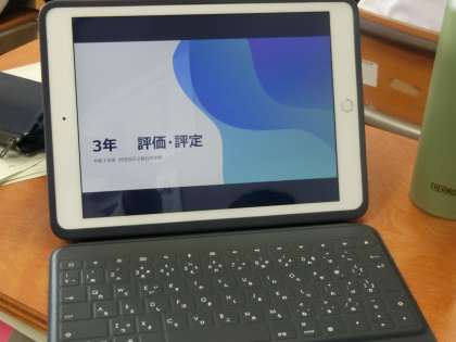 本日の6時間目の3年生の学活では、評価評定について学年主任、教務主任からリモートで説明いたしました。各観点の評価方法について詳しい説明がありどのクラスでもタブレットを通じて真剣に聞いていました。
