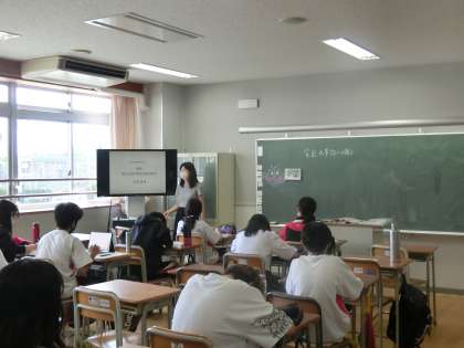 2年生の家庭科の授業では、家庭内で気を付けなければならない事故の種類、その事故を防止する方法や空気環境の安全対策、防火。防犯対策について班での話し合いを交えながら学びました。