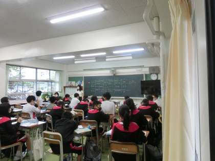 今日の1年生の家庭科では栄養素の働きを学び、様々な食材を基礎食品群に分類して、中学生に必要な栄養を満たす食事について考えました。