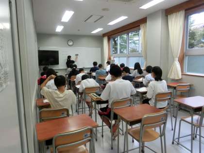 1年生の英語の少人数授業の様子です。今日はBINGOのあとスペリングコンテストの確認をいたしました。