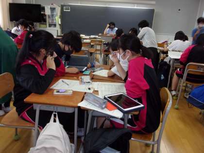 3年生の学活では、9月に予定されている修学旅行の班コースの検討を行いました。修学旅行は9月15日〜17日で広島、奈良、京都を巡る予定です。