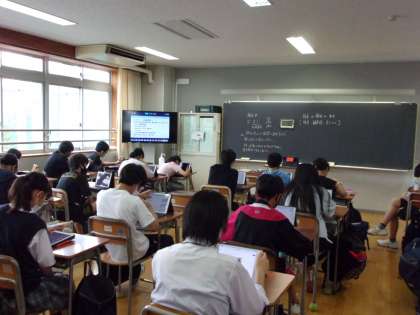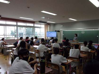 2年生は総合的な学習の時間で上級学校についての学習を行いました。タブレットを通して上級学校の種類を学んだあと、先輩たちがどのようにして上級学校を選んだかを学びました。そして、自分の興味ある上級学校についての紹介をプレゼンテーションソフトを使って作るのが夏休みの課題となります。今から少しずつ調べてみましょう。