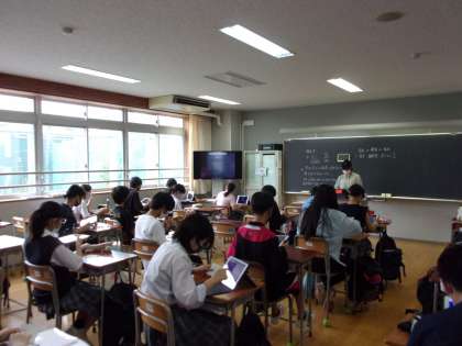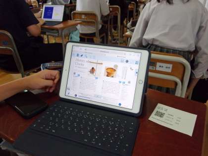 2年生の英語では、電子教科書を各自のタブレットから読み込めるようQRコードおよび個々にパスワードを作成し配布しました。これにより家庭学習でも電子教科書の使用が可能になりました。2学期からは2年生の英語では電子教科書を使った授業が増えていきます。今日は、電子教科書の使用になれるため、指定したページの新出単語、わからない単語に印をつけてスクリーンショットで保存しロイロノートを使って提出しました。