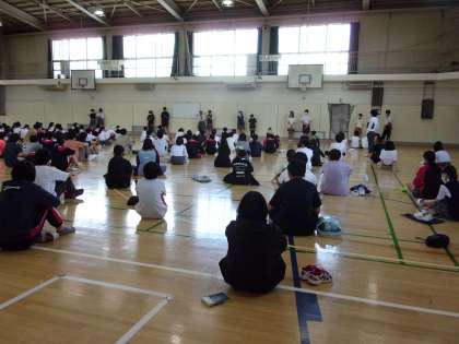 4時間目は2年生が学年集会を行いました。各クラスの学年委員よりクラス反省の発表をおこないました。授業中の私語、タブレットの使用法についての反省をしているクラスが複数ありました。そのあと「学習について」「生活について」それぞれの担当の先生から話をいたしました。最後に学年主任からタブレットやスマートフォンの使い方を含め「人の心を考えた行動をしよう。人を傷つけない言動をしていこう」といの話をいたしました。また、夏休みの生活についての話の中で、特に自転車等の交通事故や金銭の使い方やトラブルに気を付けるよにといった話も併せて行いました。