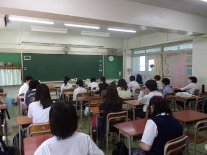 終業式は放送で行いました。校長先生の話のあと生活指導主任から一学期の振り返り夏休みの注意の話がありました。校歌は音楽の先生の歌唱を放送で流し心の中で歌いました。