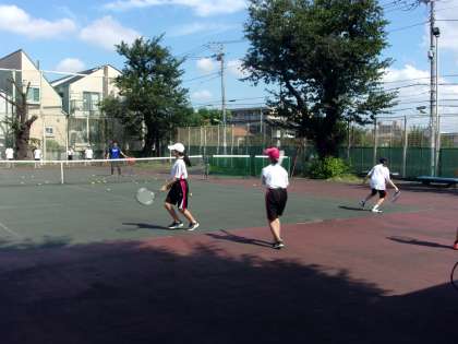 テニス部は出場予定であった区民大会が緊急事態宣言の発出に伴い中止となってしまいました。目標は8月下旬の秋季大会(新人戦)です。暑い中ですので熱中症に気を付けて連取してください。