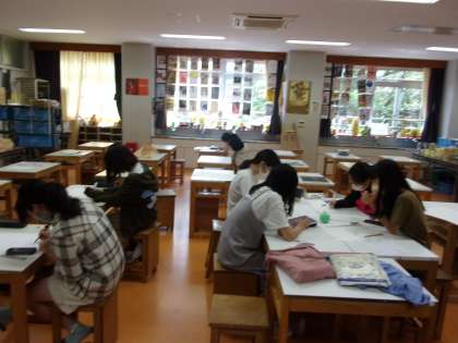 美術部では現在「薬物乱用防止ポスター」と「選挙の啓発ポスター」の制作に取り組んでいます。今日はそれぞれが構想を描き始めていました。