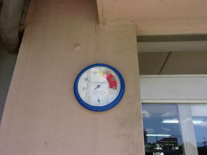 猛暑です!校庭の隅にある温度計は午後2時には37度を計測しました。本日の午後は屋外での部活動は予定していませんが、室内でも十分に気を付けましょう。本校でも使用する施設内ではエアコンで温度調節を行っているほか、各活動場所での水分補給をこまめの行うように指導しております。