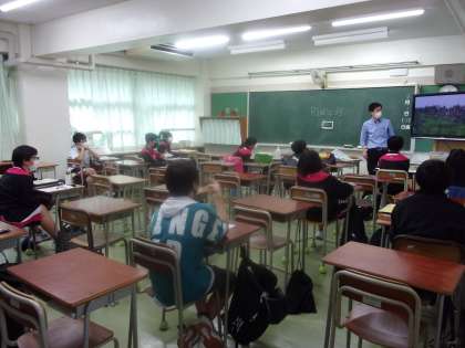 1年生の英語の授業です。分散登校中の少人数授業とあって教室内の人数はかなり少なく感じますね。