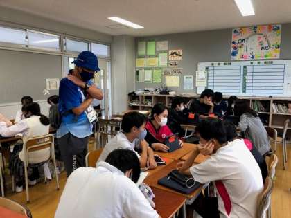 2年生のオリンピック・パラリンピックに関する課題のクラス発表の様子です。今日は、実際にオリンピック・パラリンピックの陸上競技のフィールドキャストに携わった本校の教員が、当日使用した服装で参加しアドバイスをいたしました。