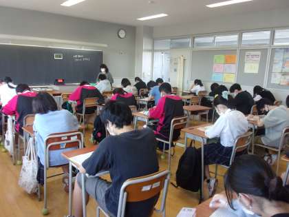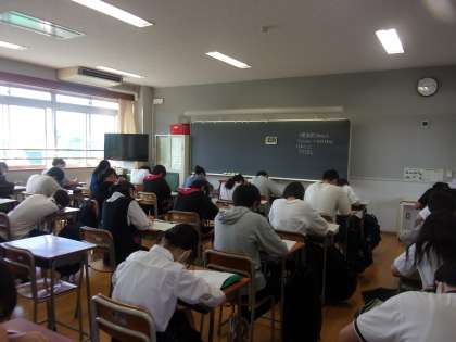 今日の3年生の英語の授業は100問テストから始まりました。単語・イディオムを中心に100問を決められた時間で解いていくものです。速さと正確さが要求されます。