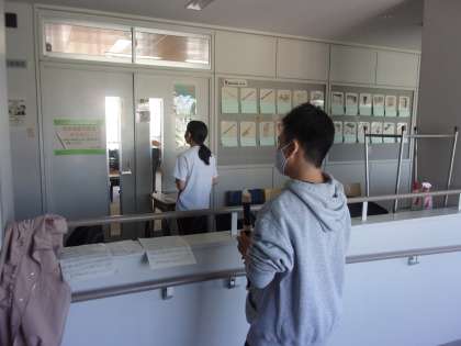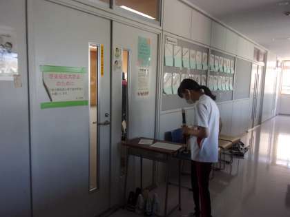 音楽室の前で数名の生徒がアルトリコーダーを構えていました。しかし音は出していません。実は今日アルトリコーダーのテストがあり廊下で順番を待つ間に運指の確認をしていたようです。