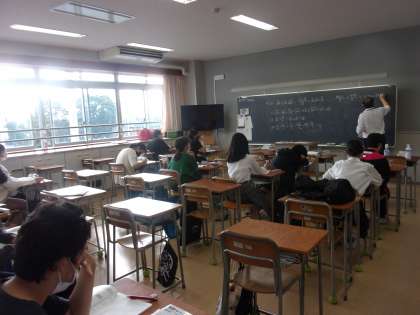 土曜日の午後は3年生を対象に土曜講習を行いました。英語と数学をそれぞれ希望により基礎クラス、発展クラスに分かれて講習を受けました。