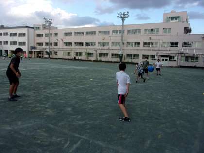 今は秋季大会の最中で毎週各部より大会結果が寄せられています。そんな中ですが同じ運動部でも軽スポーツ部は大会や試合を目的としていません。習い事やクラブチームに入っていて運動部に入るのが難しい人、ちょっと体を動かしてみたい人など入部目的は様々です。緊急事態宣言が解除され毎週火曜日に活動を再開いたしました。ドッジボール、ドロケイ、だるまさんが転んだなど様々な活動を行っています。夏はプールでも活動しました。