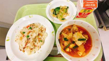 今日は、笹原小学校の人気メニュー「豆腐チゲ」を作りました。具だくさんで野菜などの旨味が出ていておいしかったです。