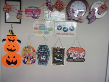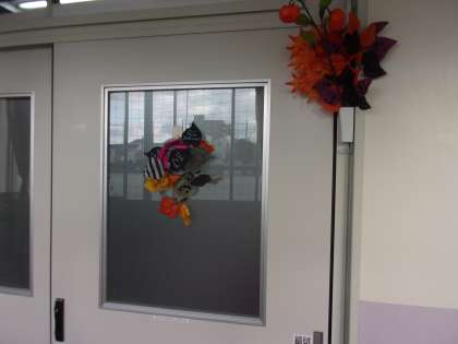 校長室前の廊下もハロウィーンの飾りつけに変わりました。季節の移り変わりを感じますね。