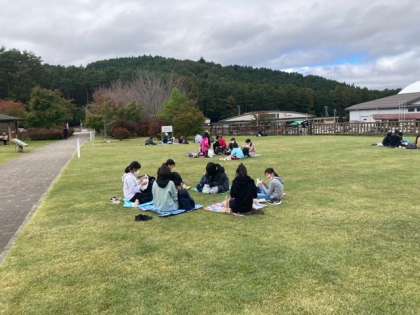 富士山レーダードーム館そばの広場で昼食をとりました。