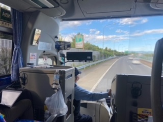 バスで河口湖は移動中です。車内はレクで盛り上がっています!