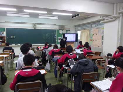本日の1時間目1年生の国語の研究授業を世田谷区教育委員会より講師の先生にご来校していただいて行いました。内容は故事成語でした。どの生徒も一生懸命取り組んでいました。