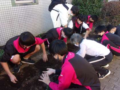 地面を掘り花と球根を植えた後はたっぷりと水やりをしました。