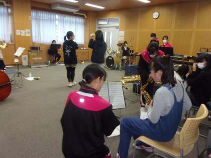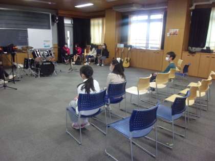 軽音楽部では活動の紹介、吹奏楽部では実際に楽器の演奏を体験しました。