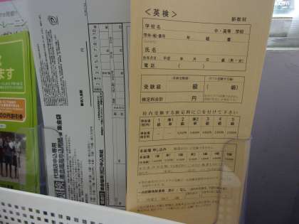 1月15日に本校を会場(自校開催)として行われる英検(実用英語技能検定)の申し込みが11月24日(水)となっております。申し込む生徒は職員室前の棚にある封筒に費用事項を記入し代金を添えて24日(水)の朝ピロティで申し込みをしてください。詳しくは昨日配布したプリントをご覧ください。対象は本校の在籍生徒のみとなっておりますのでご了解ください。