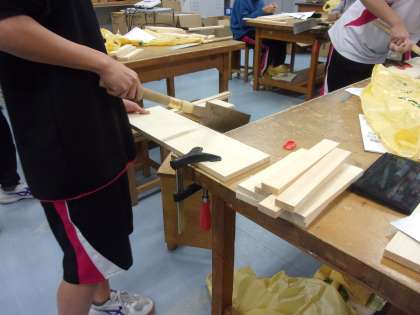 1年の技術の授業では木工細工が始まりました。本棚を制作しています。出来上がりが楽しみですね。